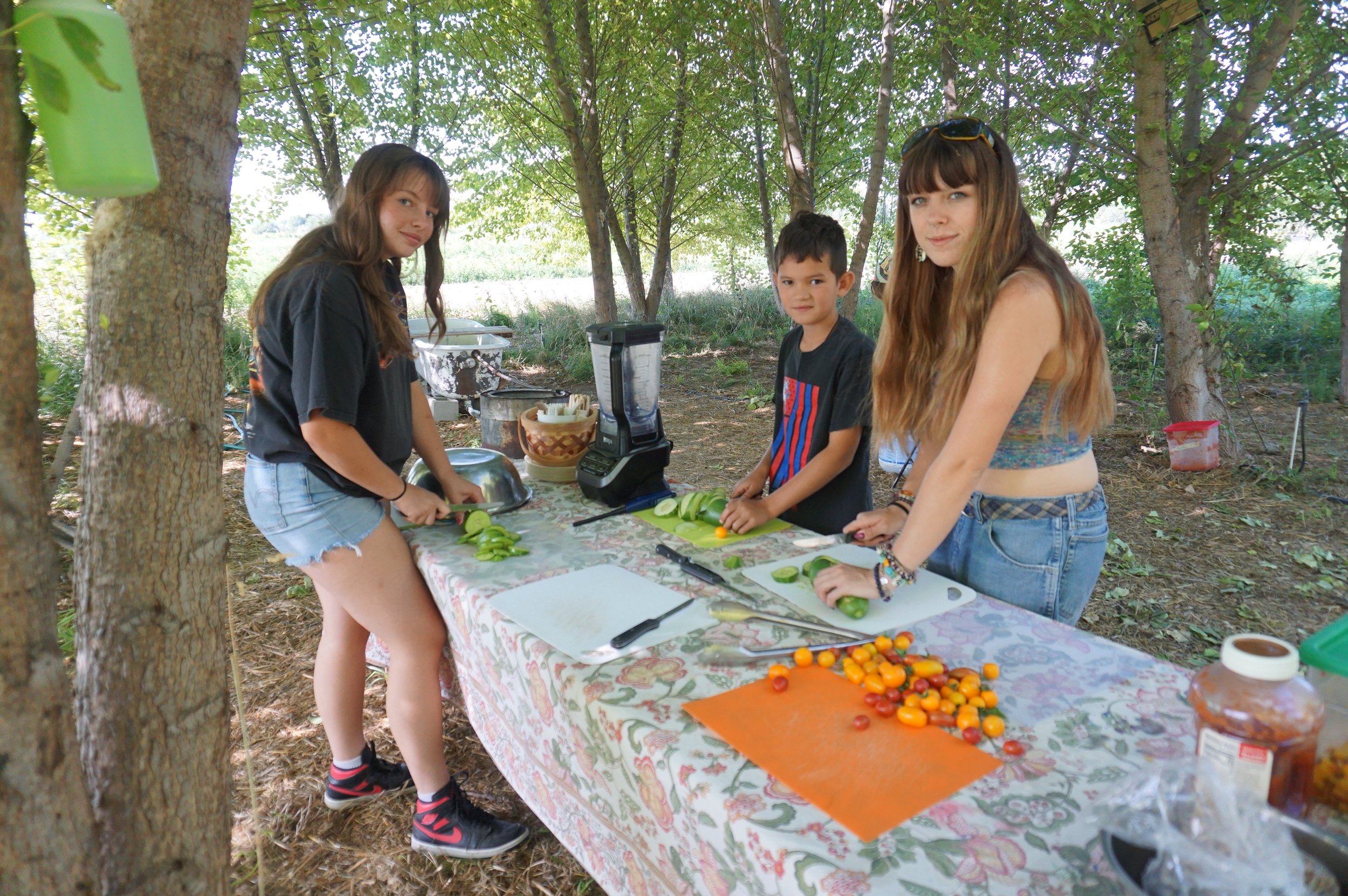We will be making our lunch as a community for every camp. The kids will harvest prepare and serve lunch for themselves and for the farm crew every day. If your kiddo is really picky please send them with snacks they like so they don’t go hungry, but we would prefer that they eat what we prepare together as a way of building community.